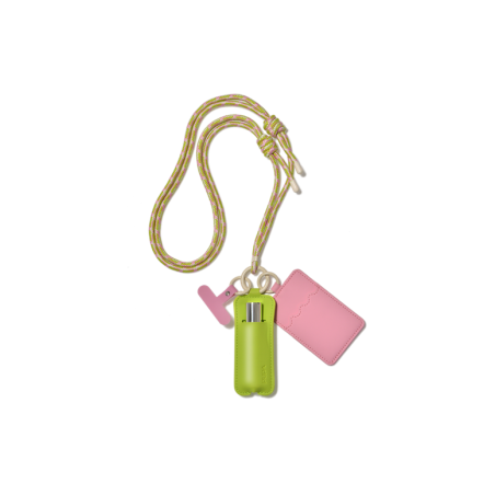 Accessoire portable composé d’une bandoulière réglable, de mousquetons amovibles, d’un porte-brillant à lèvres, d’un porte-cartes et d’une languette pour téléphone portable universelle.