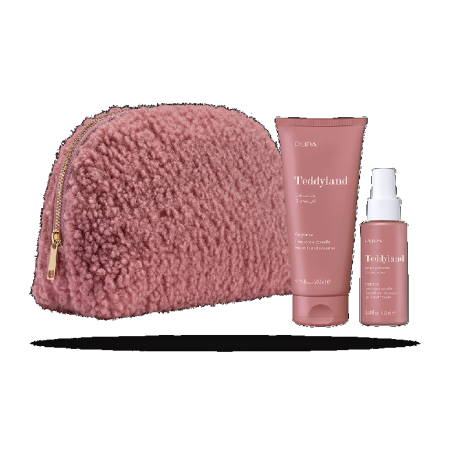 GRANDE TROUSSE DE TOILETTE EN TISSU TEDDY Trousse de toilette douce et élégante à la forme essentielle, réalisée à partir du tissu incontournable de la saison froide.. Le kit contient : GEL DOUCHE Il nettoie en laissant la peau douce et en la parfumant délicatement. Produit testé sous contrôle dermatologique.
