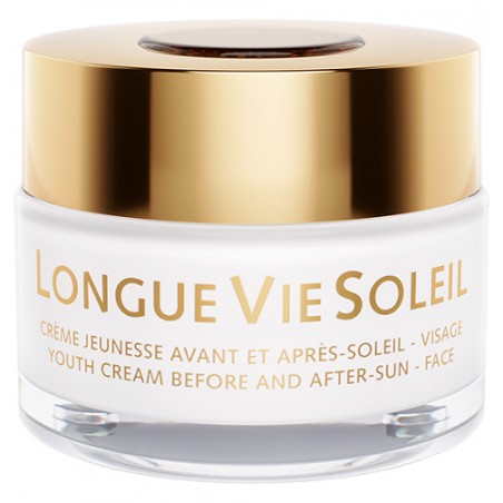 La Crème Longue Vie Soleil est la Crème jeunesse Avant et Après-Soleil Visage qui hydrate la peau et préserve la régénération cellulaire, Les sensations d'échauffement sont apaisées et la peau visiblement raffermie.