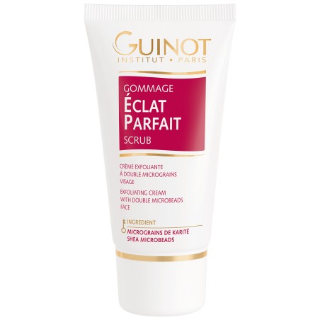 Microparticules exfoliantes : désincrustent les pores et éliminent les cellules mortes en exc ès afin d 'affiner le grain de peau. Micrograins de Karité : lissent et adoucissent la surface de la peau.
